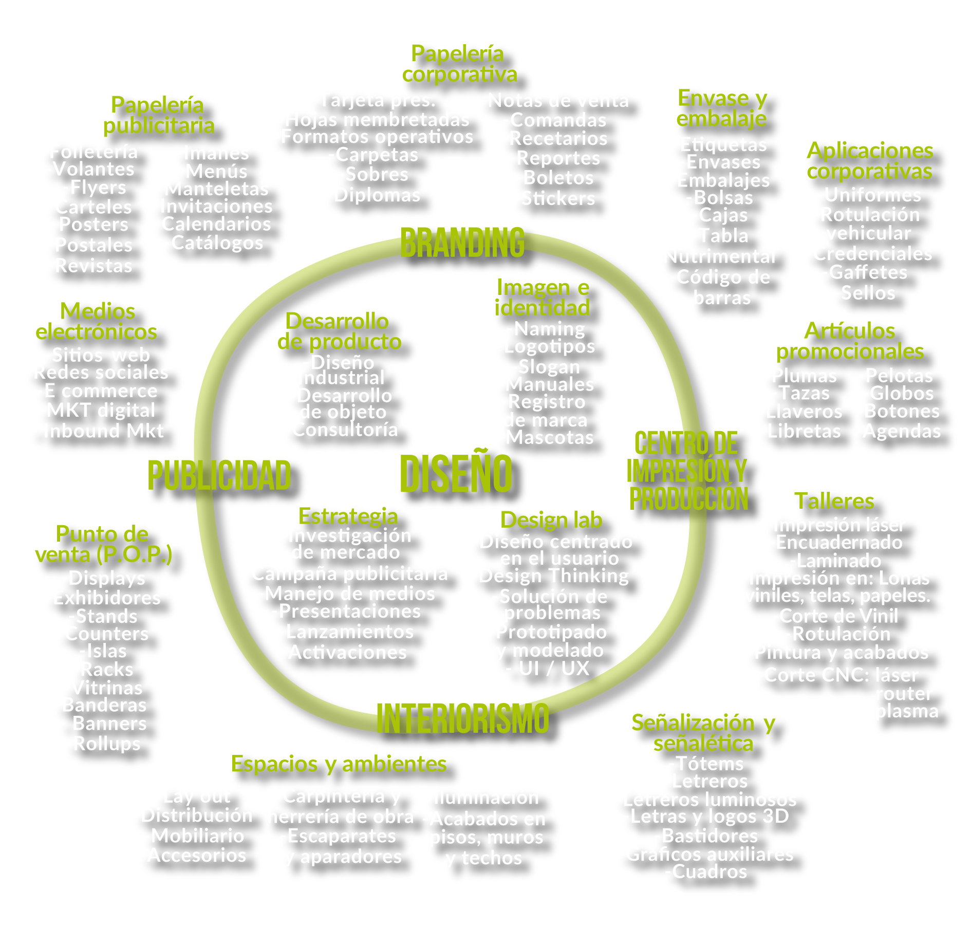 Brindamos soluciones creativas a partir del diseño,vamos de lo estratégico a lo tangible, materializamos tus ideas, propiciamos una mejora continua.